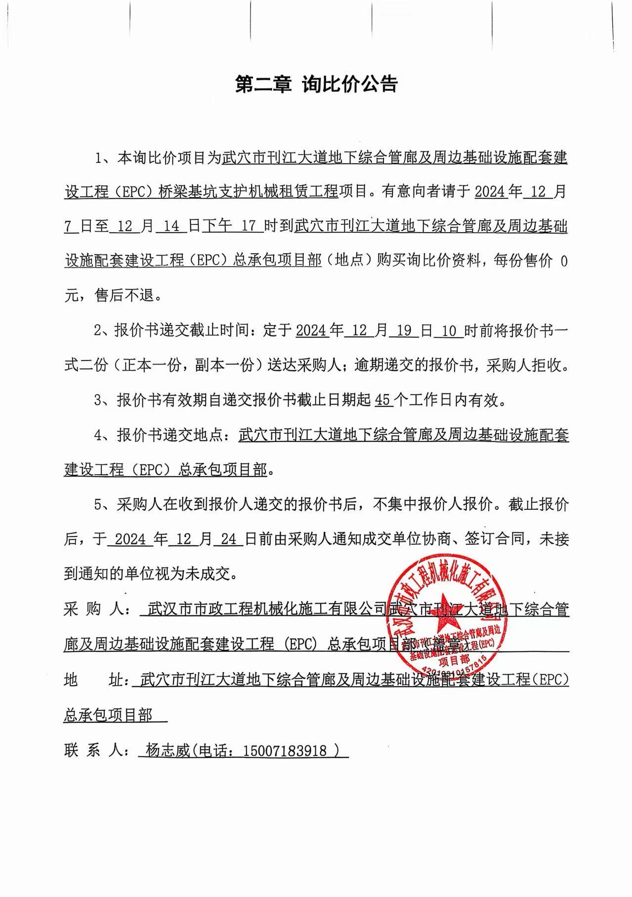 武穴市刊江大道地下綜合管廊及周邊基礎(chǔ)設(shè)施配套建設(shè)工程(EPC)橋梁基坑支護(hù)機(jī)械租賃工程詢價(jià)公告