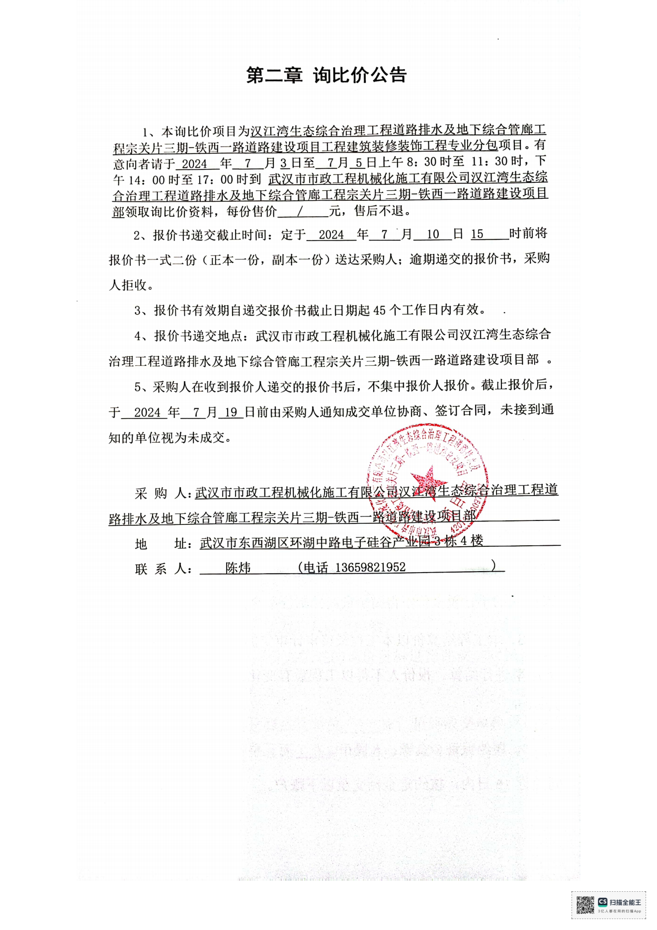 漢江灣生態(tài)綜合治理工程道路排水及地下綜合管廊工程宗關片三期-鐵西一路道路建設項目工程建筑裝修裝飾工程專業(yè)分包詢價公告
