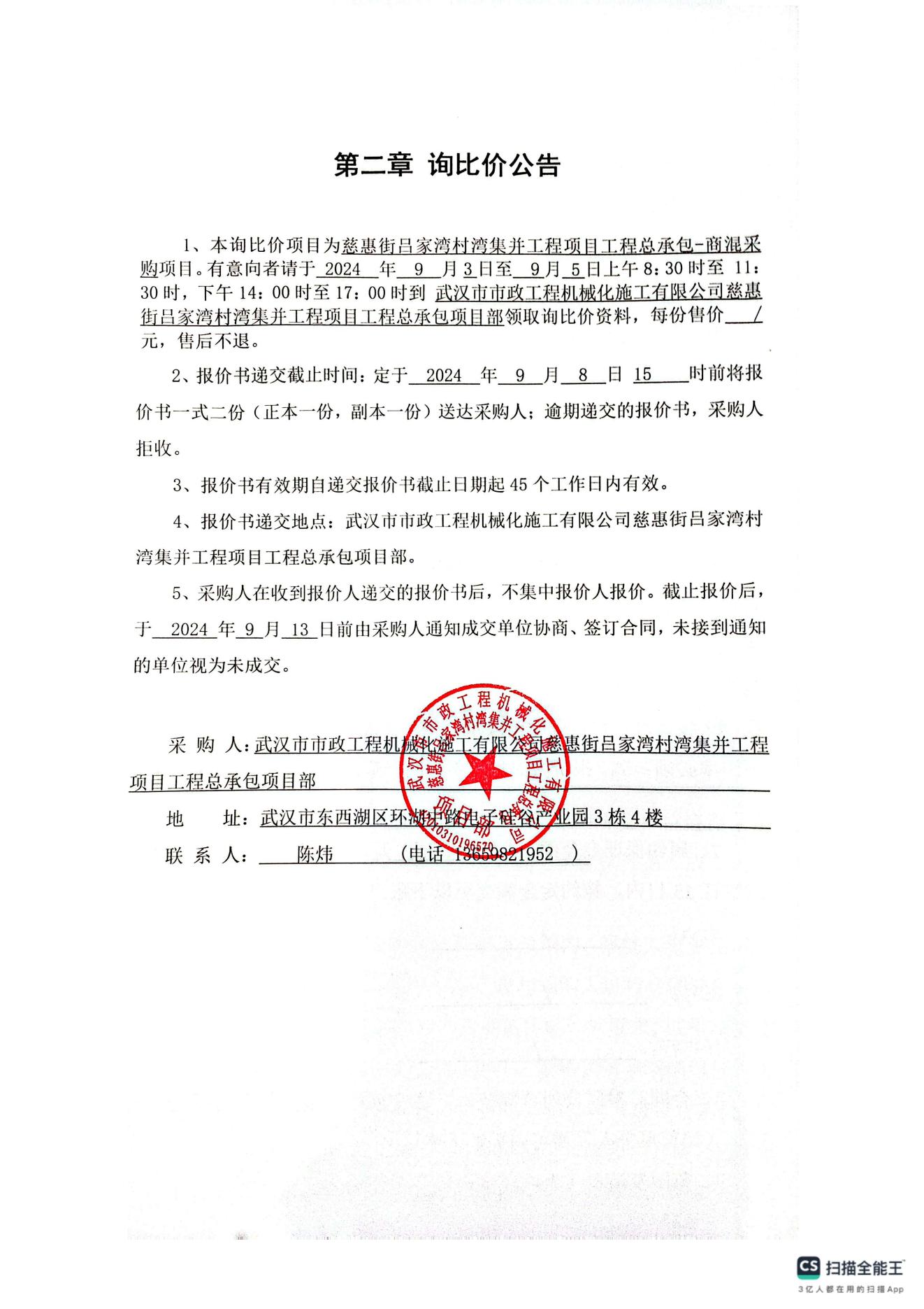 慈惠街呂家灣村灣集并工程項(xiàng)目工程總承包-商混采購(gòu)詢比價(jià)公告