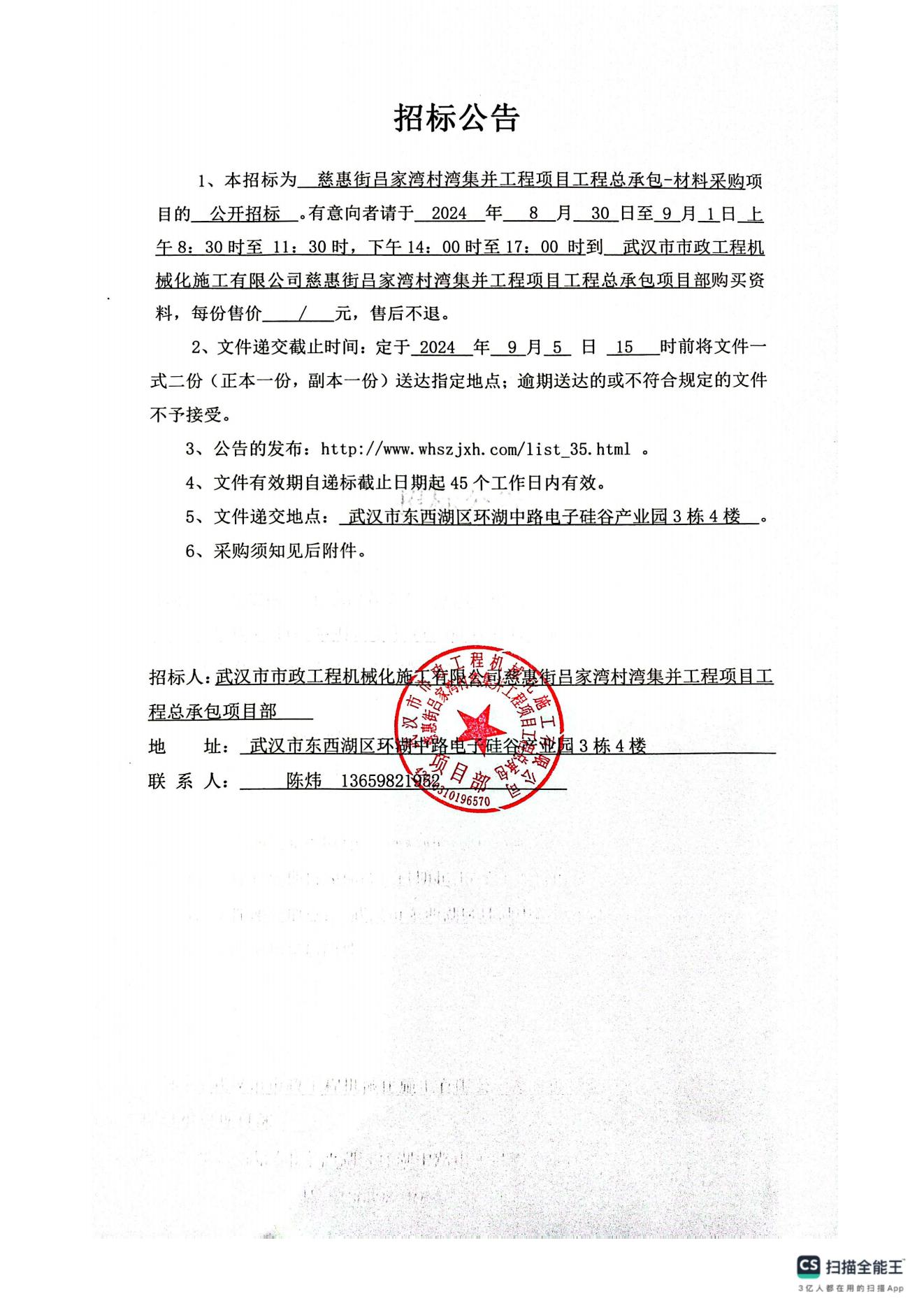 慈惠街呂家灣村灣集并工程項(xiàng)目工程總承包-材料采購(gòu)招標(biāo)公告