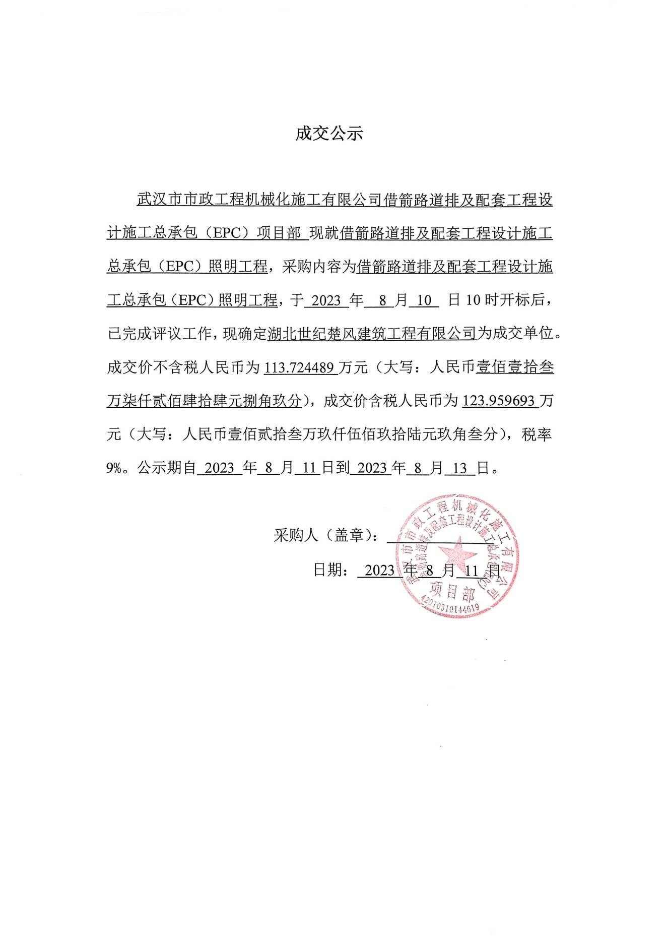 借箭路道排及配套工程設(shè)計施工總承包(EPC)照明工程成交公示