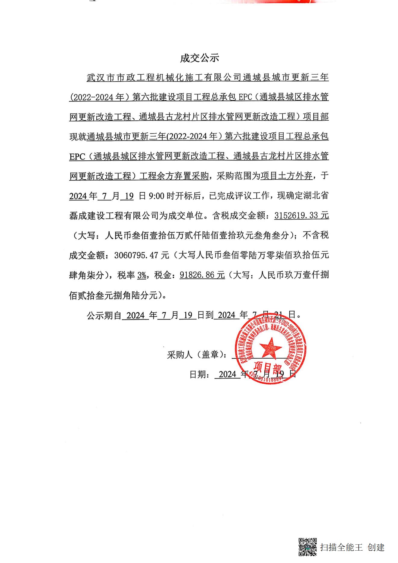 通城縣城市更新三年(2022-2024年)第六批建設項目工程總承包EPC(通城縣城區(qū)排水管網更新改造工程、通城縣古龍村片區(qū)排水管網更新改造工程)工程余方棄置采購成交公示